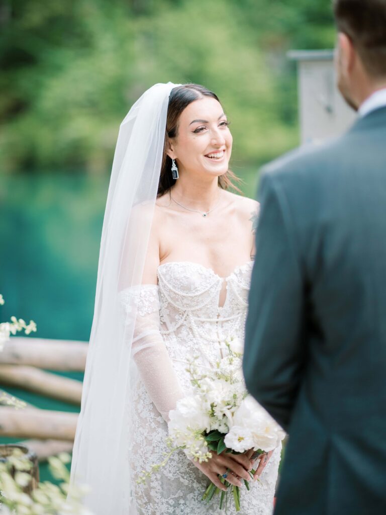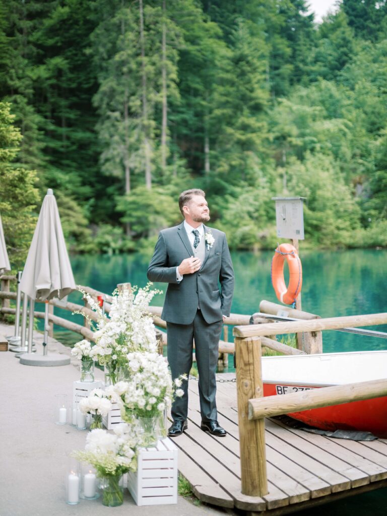 Their chosen destination, Lake Blausee, is one of the most enchanting natural gems of the Alps. Renowned for its azure waters and serene forests, it provides the perfect ambiance for couples seeking a wedding filled with emotion and style. As a photographer specializing in Swiss wedding photography, I was honored to capture their story in this unique setting.