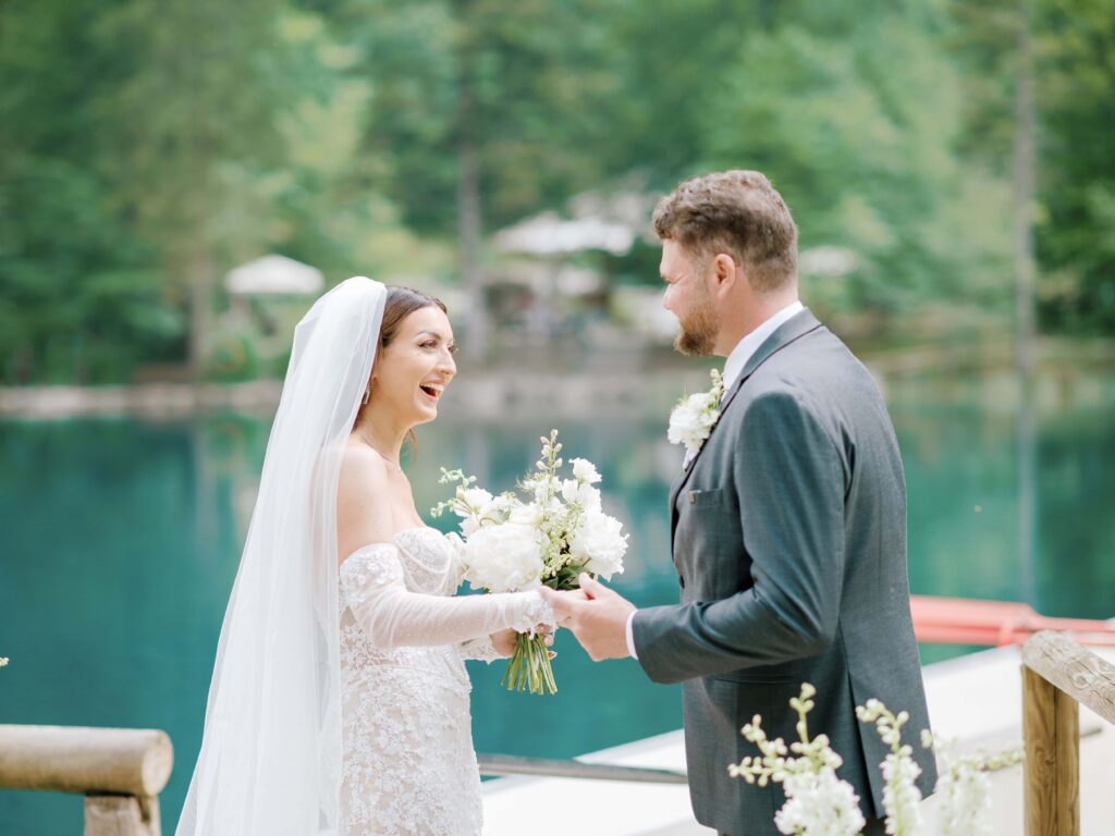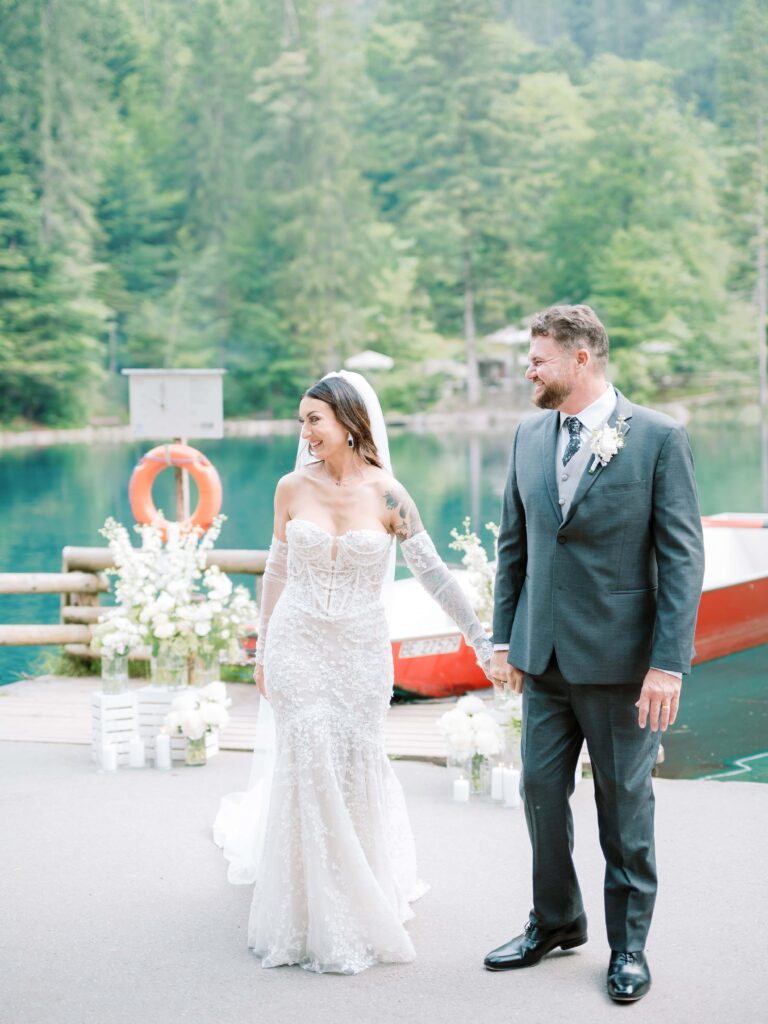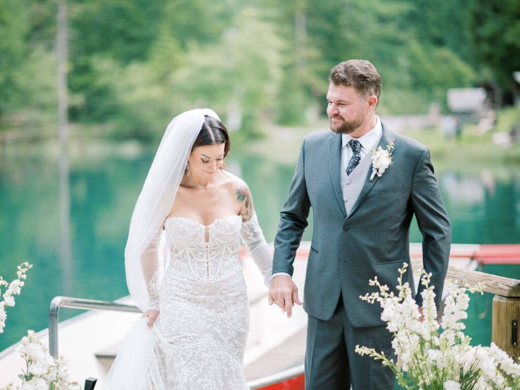 The beauty of a small wedding in Switzerland—especially in a place like Lake Blausee—is that the couple has the freedom to explore their surroundings without pressure or time constraints. For the next hour, the couple strolled through the woods, crossed wooden bridges, and walked along the lakeshore.