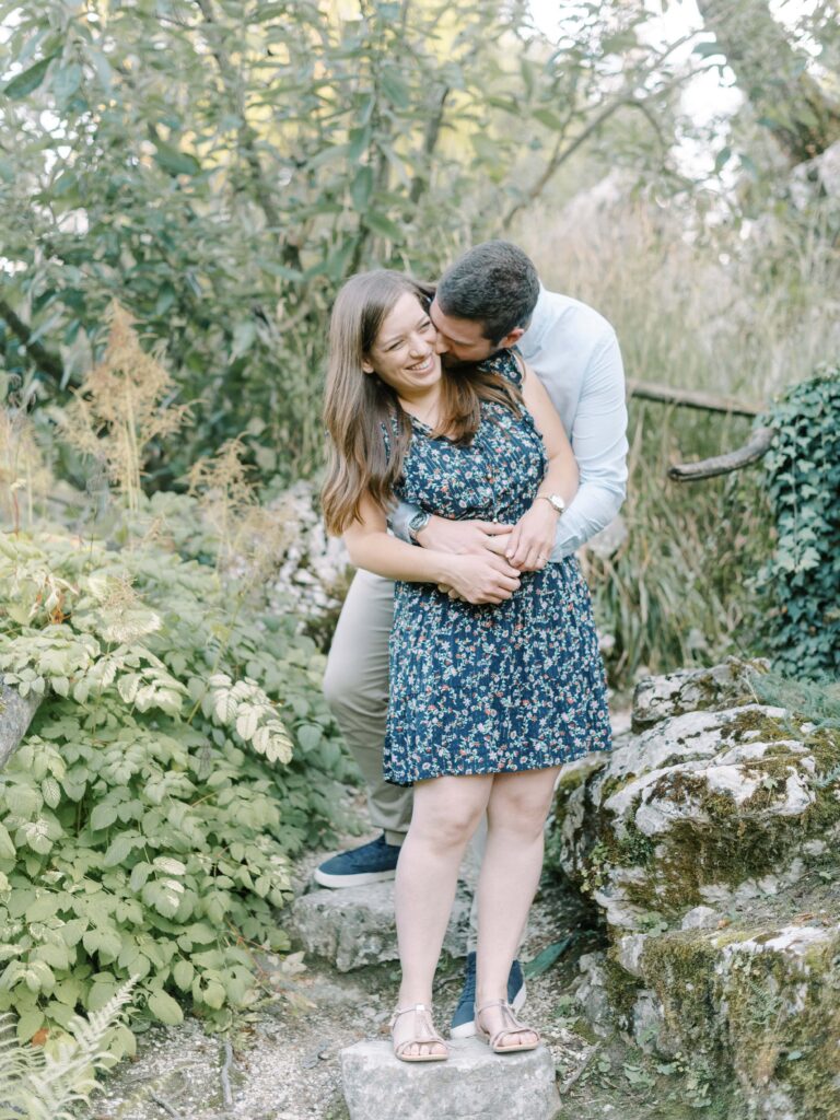 For this Geneva session, the couple chose light pastel outfits that perfectly complemented the garden’s palette. Her flowing blush dress caught the breeze as she moved, while his linen suit added a touch of effortless sophistication. Together, they embodied the timeless romance that Switzerland is known for.